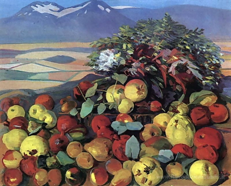 Ti offriamo una riproduzione artigianale su tela dell'opera famosa 'Autunno still life' di Martiros Saryan, dal Museo delle Riproduzioni.