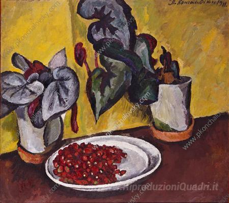 Ti offriamo una riproduzione artigianale su tela dell'opera famosa 'Bacche e begonie' di Pyotr Konchalovsky, dal Museo delle Riproduzioni.