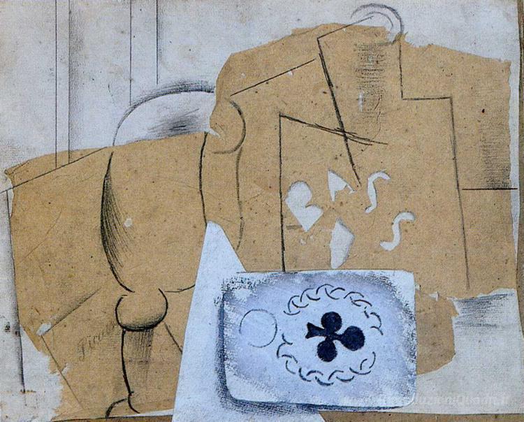 Ti offriamo una riproduzione artigianale su tela dell'opera famosa 'Bicchiere Bottiglia di Bass' di Georges Braque, dal Museo delle Riproduzioni.