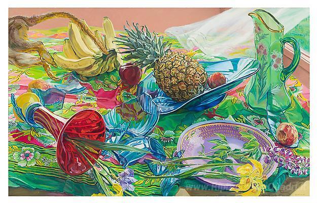 Ti offriamo una riproduzione artigianale su tela dell'opera famosa 'Birbonata' di Janet Fish, dal Museo delle Riproduzioni.
