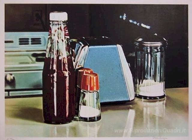 Il Blu Portatovaglioli non è solo un'opera d'arte, ma un elemento di design che trasforma qualsiasi ambiente in uno spazio elegante e accogliente. La tavolozza straordinaria, dominata da sfumature di blu, aggiunge profondità e carattere, rendendo questo dipinto ideale per arricchire la vostra casa o il vostro ufficio. Scegliere un’opera di Ralph Goings significa investire in un pezzo di storia e cultura, capace di esaltare l'atmosfera del vostro spazio e di raccontare la vostra passione per l'arte contemporanea.