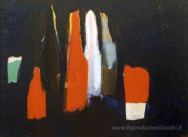 Ti offriamo una riproduzione artigianale su tela dell'opera famosa 'Bouteilles' di Nicolas de Staël, dal Museo delle Riproduzioni.