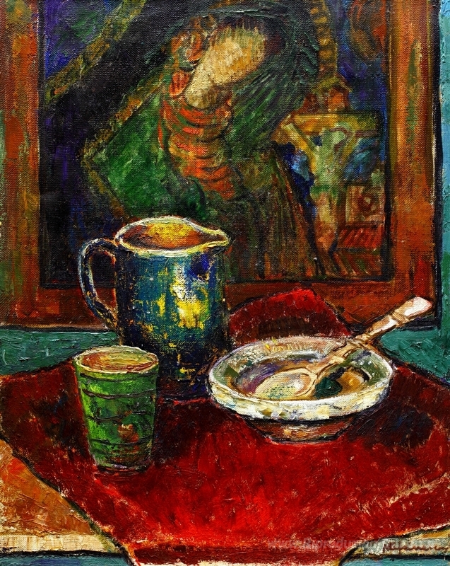 Ti offriamo una riproduzione artigianale su tela dell'opera famosa 'Cena vicino all'icona' di George Stefanescu-Ramnic , dal Museo delle Riproduzioni.