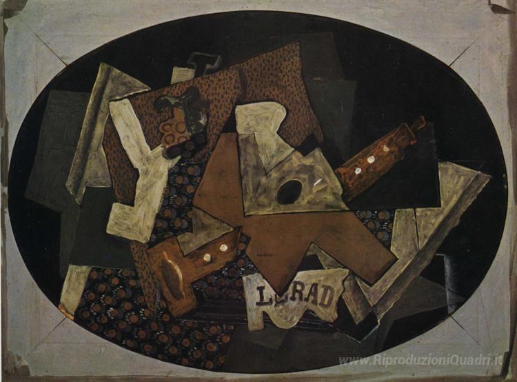 Ti offriamo una riproduzione artigianale su tela dell'opera famosa 'Clarinetto, Chitarra e Compotier' di Georges Braque, dal Museo delle Riproduzioni.