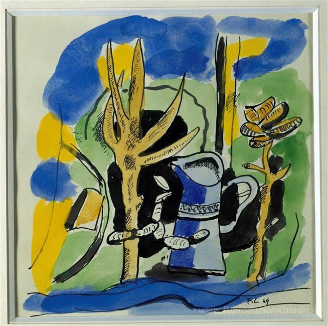 Ti offriamo una riproduzione artigianale su tela dell'opera famosa 'Composizione a brocca' di Fernand Leger, dal Museo delle Riproduzioni.