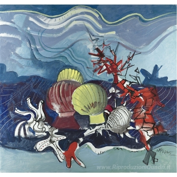 Ti offriamo una riproduzione artigianale su tela dell'opera famosa 'Conchiglie' di Dimitris Mytaras, dal Museo delle Riproduzioni.