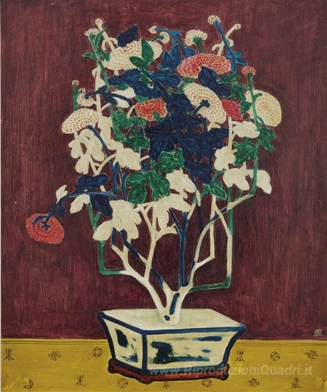 Ti offriamo una riproduzione artigianale su tela dell'opera famosa 'Crisantemi in vaso' di Sanyu, dal Museo delle Riproduzioni.