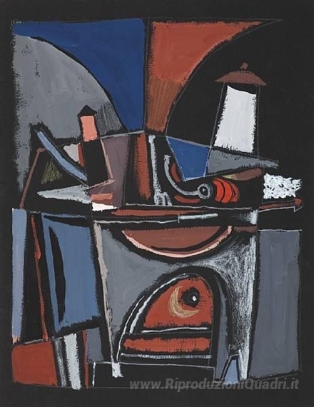 Ti offriamo una riproduzione artigianale su tela dell'opera famosa 'Cuisinière' di Mario Prassinos, dal Museo delle Riproduzioni.