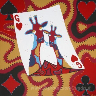Ti offriamo una riproduzione artigianale su tela dell'opera famosa 'Cuori di giraffa è Asso' di Mr. Dejo, dal Museo delle Riproduzioni.
