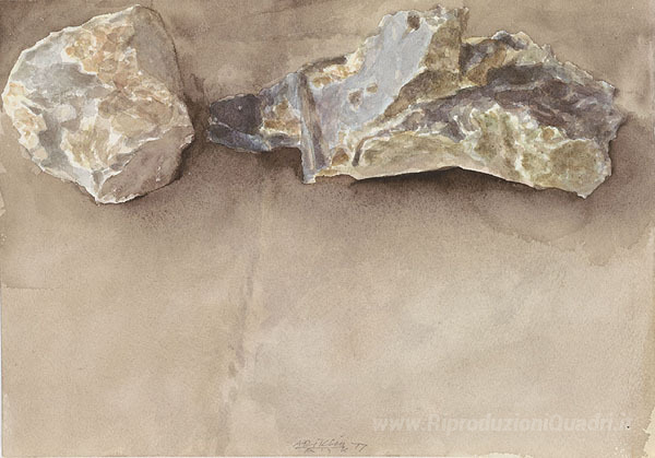 Ti offriamo una riproduzione artigianale su tela dell'opera famosa 'Due Stones' di Avigdor Arikha, dal Museo delle Riproduzioni.