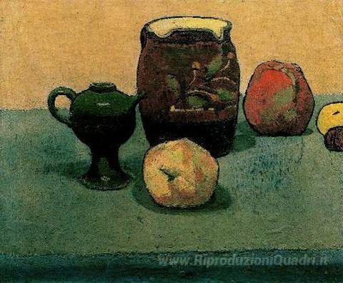Ti offriamo una riproduzione artigianale su tela dell'opera famosa 'Earthware Pot e mele' di Emile Bernard, dal Museo delle Riproduzioni.