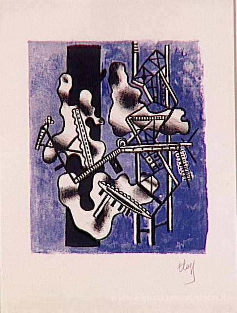 Ti offriamo una riproduzione artigianale su tela dell'opera famosa 'Elementi meccanici su sfondo blu' di Fernand Leger, dal Museo delle Riproduzioni.