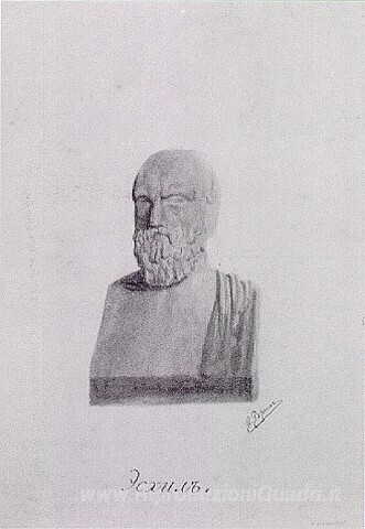 Ti offriamo una riproduzione artigianale su tela dell'opera famosa 'Eschilo' di Nicholas Roerich, dal Museo delle Riproduzioni.