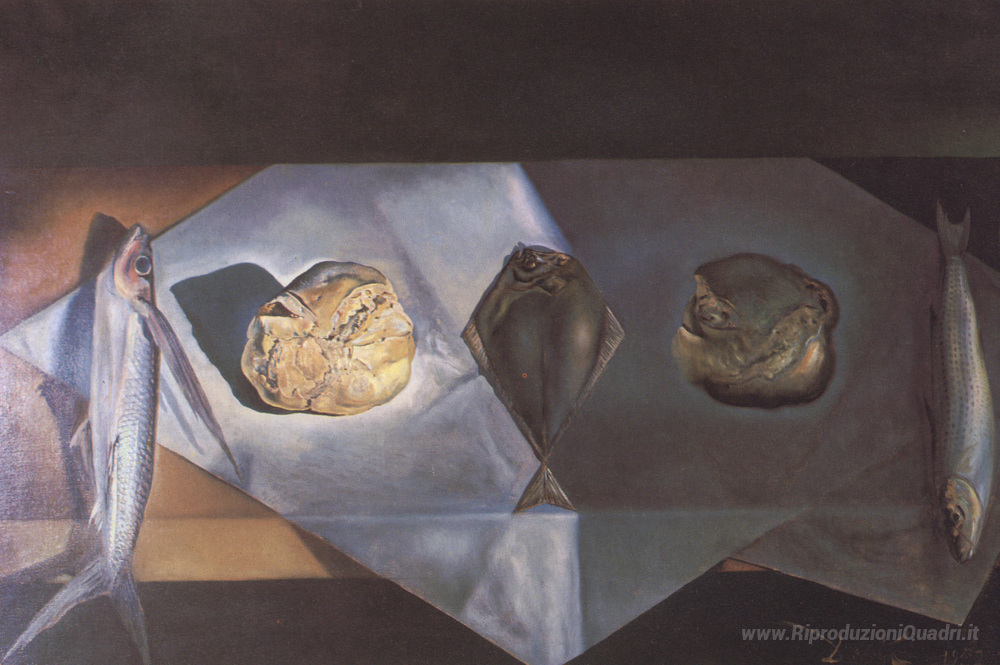 Ti offriamo una riproduzione artigianale su tela dell'opera famosa 'Eucaristico Still Life' di Salvador Dali, dal Museo delle Riproduzioni.