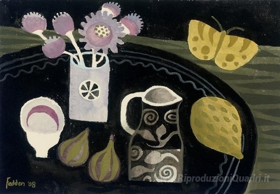 Ti offriamo una riproduzione artigianale su tela dell'opera famosa 'Farfalla gialla' di Mary Fedden, dal Museo delle Riproduzioni.