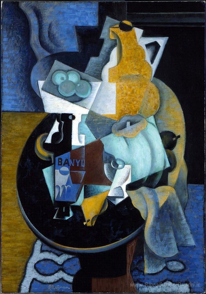 Ti offriamo una riproduzione artigianale su tela dell'opera famosa 'Frutta e una brocca su un tavolo' di Jean Metzinger, dal Museo delle Riproduzioni.