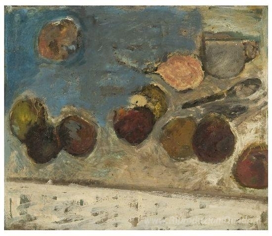 Ti offriamo una riproduzione artigianale su tela dell'opera famosa 'Frutta' di Gandy Brodie, dal Museo delle Riproduzioni.