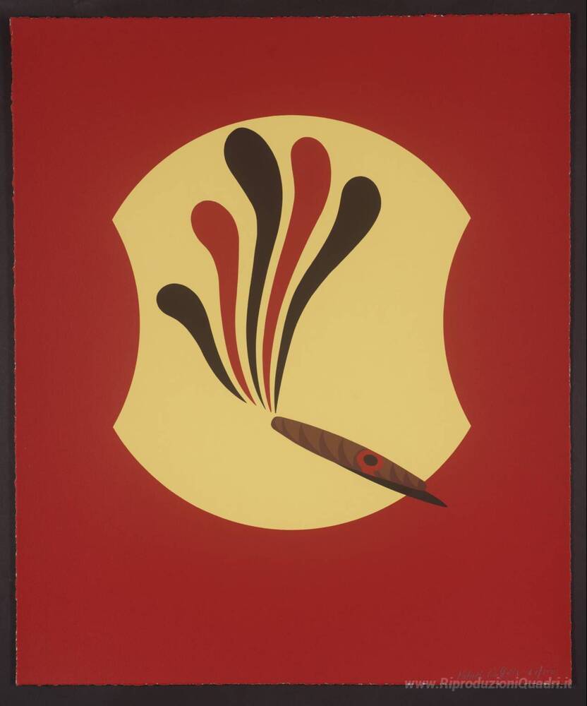Ti offriamo una riproduzione artigianale su tela dell'opera famosa 'Fumo di Freud' di Patrick Caulfield, dal Museo delle Riproduzioni.