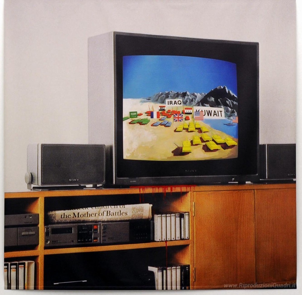 Ti offriamo una riproduzione artigianale su tela dell'opera famosa 'Giochi di guerra' di Richard Hamilton, dal Museo delle Riproduzioni.