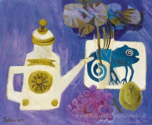 Immergetevi nell'incantevole mondo dei dipinti a olio italiani, dove ogni opera racconta una storia unica e affascinante. Oggi vi presentiamo Il Can Oil, un capolavoro della talentuosa artista Mary Fedden, nota per il suo approccio distintivo che unisce colori vivaci e forme armoniose. Nata nel cuore del Regno Unito, Fedden ha saputo catturare la bellezza della vita quotidiana attraverso la sua peculiarità visiva, trasmettendo emozioni autentiche in ogni tela.