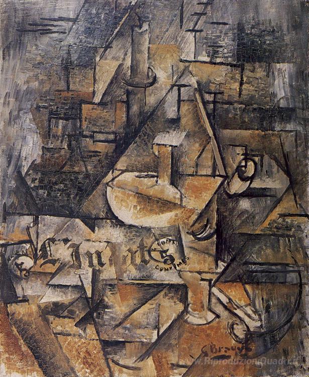 Ti offriamo una riproduzione artigianale su tela dell'opera famosa 'Il Candeliere' di Georges Braque, dal Museo delle Riproduzioni.