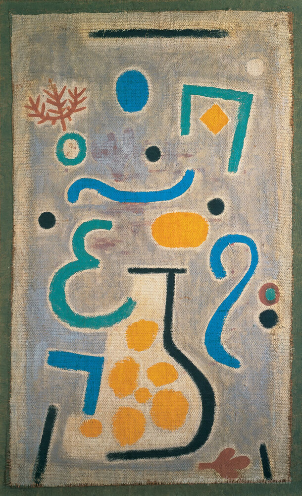 Ti offriamo una riproduzione artigianale su tela dell'opera famosa 'Il vaso' di Paul Klee, dal Museo delle Riproduzioni.