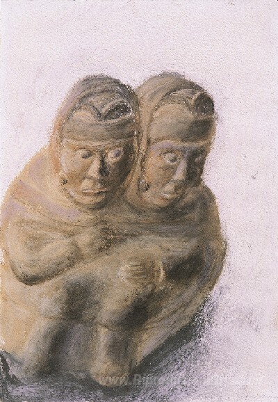 Ti offriamo una riproduzione artigianale su tela dell'opera famosa 'Inca Scultura di siamesi Brothers' di Avigdor Arikha, dal Museo delle Riproduzioni.