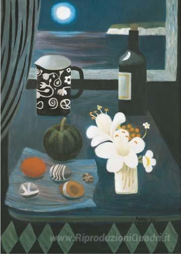 Ti offriamo una riproduzione artigianale su tela dell'opera famosa 'Irish Lillies (Lillies al chiaro di luna)' di Mary Fedden, dal Museo delle Riproduzioni.