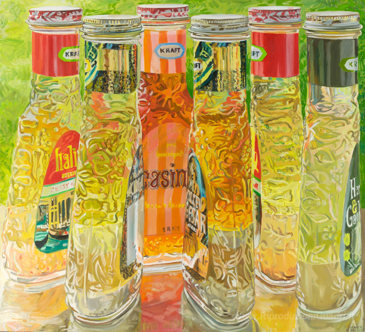 Ti offriamo una riproduzione artigianale su tela dell'opera famosa 'Kraft Salad Dressing' di Janet Fish, dal Museo delle Riproduzioni.