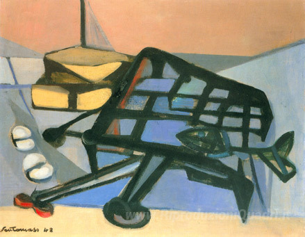 Ti offriamo una riproduzione artigianale su tela dell'opera famosa 'La Graticola' di Giuseppe Santomaso, dal Museo delle Riproduzioni.