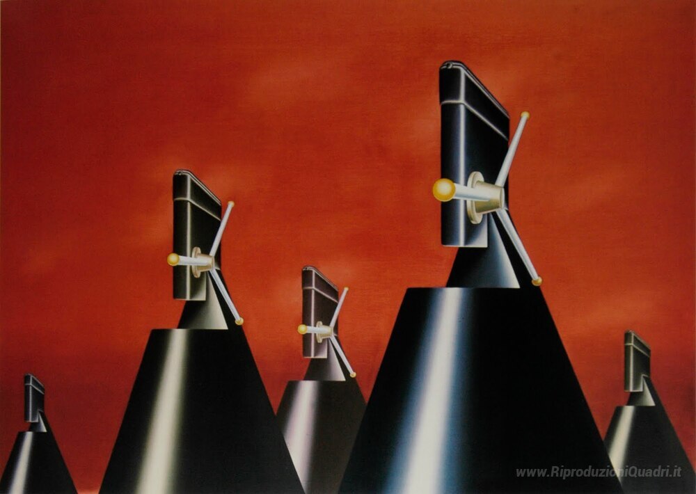 Ti offriamo una riproduzione artigianale su tela dell'opera famosa 'La guerra' di Konrad Klapheck, dal Museo delle Riproduzioni.