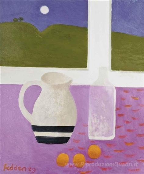 Scoprite la magia del dipinto a olio La luna dell’acclamata artista britannica Mary Fedden, un'opera che unisce eleganza e profondità emotiva. Fedden, nota per il suo stile distintivo che combina elementi realisti e astratti, riesce a catturare l'essenza della bellezza attraverso una palette vibrante e una composizione armoniosa. Ogni tocco di pennello racconta una storia, trasportando lo spettatore in un mondo di sogno e contemplazione.