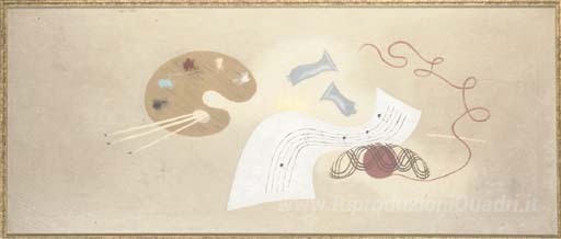 Ti offriamo una riproduzione artigianale su tela dell'opera famosa 'La Peinture et La Musique' di Jean Hugo, dal Museo delle Riproduzioni.