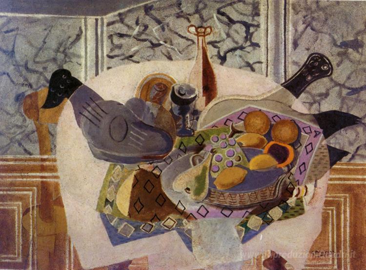 Ti offriamo una riproduzione artigianale su tela dell'opera famosa 'La Tovaglia Viola' di Georges Braque, dal Museo delle Riproduzioni.