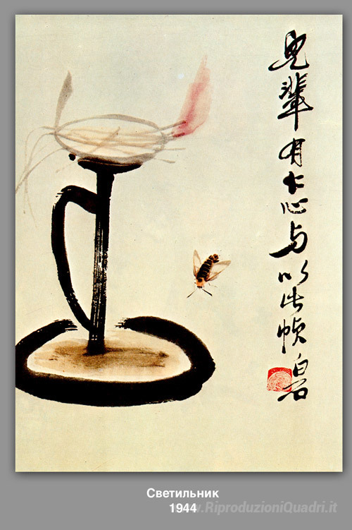 Ti offriamo una riproduzione artigianale su tela dell'opera famosa 'Lampada' di Qi Baishi, dal Museo delle Riproduzioni.