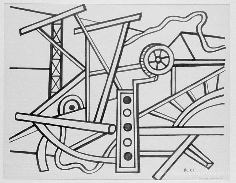 Ti offriamo una riproduzione artigianale su tela dell'opera famosa 'Macchinari agricoli' di Fernand Leger, dal Museo delle Riproduzioni.