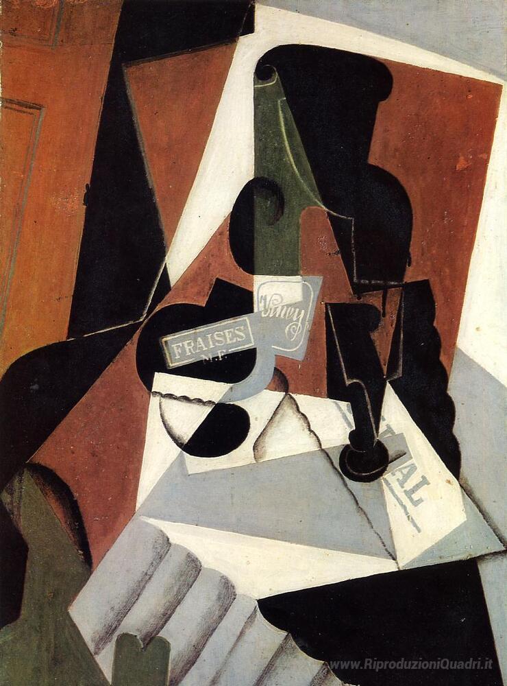 Ti offriamo una riproduzione artigianale su tela dell'opera famosa 'Marmellata di fragole' di Juan Gris, dal Museo delle Riproduzioni.