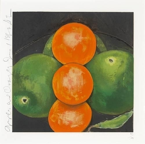 Ti offriamo una riproduzione artigianale su tela dell'opera famosa 'Mele e Arance' di Donald Sultan, dal Museo delle Riproduzioni.