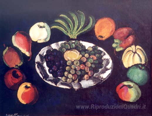 Ti offriamo una riproduzione artigianale su tela dell'opera famosa 'Natura morta con banane' di Ilya Mashkov, dal Museo delle Riproduzioni.