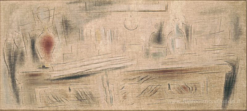 Ti offriamo una riproduzione artigianale su tela dell'opera famosa 'Natura morta con bottiglie' di Konstantinos Parthenis, dal Museo delle Riproduzioni.