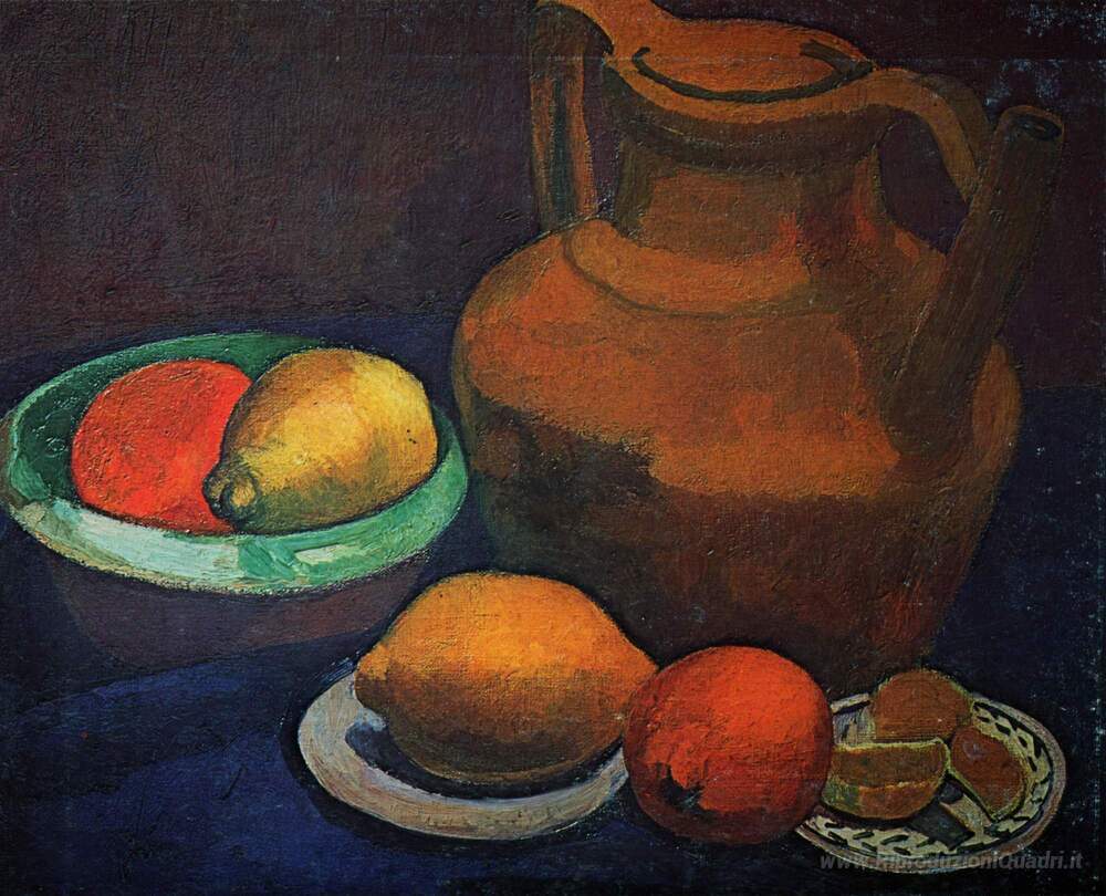 Ti offriamo una riproduzione artigianale su tela dell'opera famosa 'Natura morta con brocca' di Paula Modersohn-Becker, dal Museo delle Riproduzioni.
