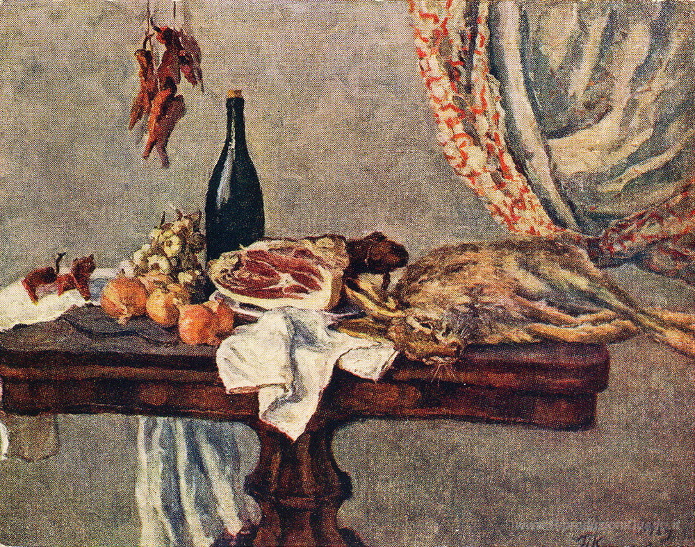 Immergiti nella bellezza senza tempo della pittura a olio italiana con l'incantevole opera Natura morta con coniglio di Pyotr Konchalovsky. Questo artista di origine russa, che ha trovato ispirazione nelle tradizioni artistiche italiane, è noto per la sua capacità di catturare l'essenza della vita quotidiana attraverso l'uso sapiente del colore e della luce. La sua tecnica, che combina pennellate incisive e una palette vibrante, trasforma ogni dipinto in un'esperienza sensoriale unica.