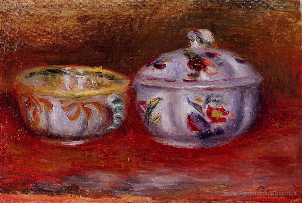 Ti offriamo una riproduzione artigianale su tela dell'opera famosa 'Natura morta con frutta Bowl' di Pierre-Auguste Renoir, dal Museo delle Riproduzioni.