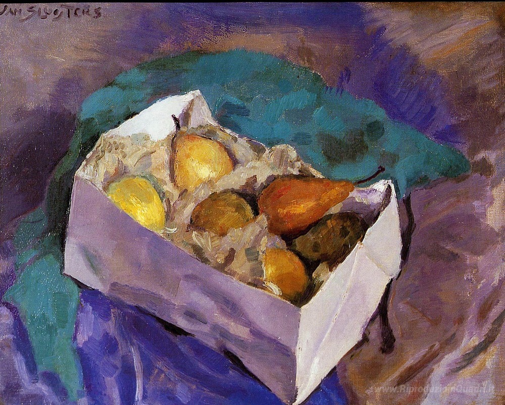 Ti offriamo una riproduzione artigianale su tela dell'opera famosa 'Natura morta con frutta' di Jan Sluyters, dal Museo delle Riproduzioni.