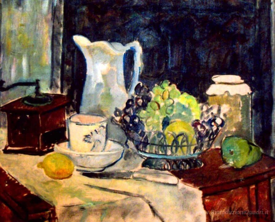 Ti offriamo una riproduzione artigianale su tela dell'opera famosa 'Natura morta con frutta' di Nutzi Acontz, dal Museo delle Riproduzioni.