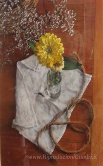 Ti offriamo una riproduzione artigianale su tela dell'opera famosa 'Natura morta con giallo Zinnia' di John Stuart Ingle, dal Museo delle Riproduzioni.