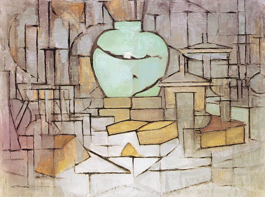 Ti offriamo una riproduzione artigianale su tela dell'opera famosa 'Natura morta con Gingerpot 2' di Piet Mondrian, dal Museo delle Riproduzioni.