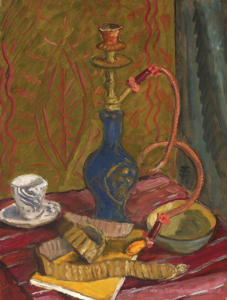 Ti offriamo una riproduzione artigianale su tela dell'opera famosa 'Natura morta con Hubble-Bubble' di Theodor Pallady, dal Museo delle Riproduzioni.