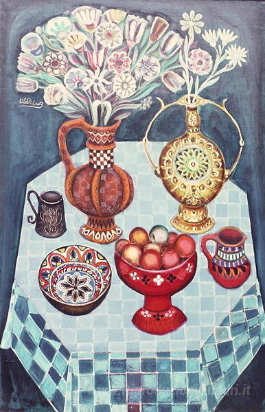 Benvenuti nella nostra selezione di dipinti a olio italiani, dove l'arte incontra l'eleganza e la tradizione. Oggi vi presentiamo Natura morta con mele rosse dell'artista Radi Nedelchev, un'opera che cattura l'essenza della natura attraverso una rappresentazione vibrante e vivace. Radi Nedelchev, noto per la sua maestria nell'uso del colore e della luce, riesce a trasmettere emozioni profonde attraverso la bellezza semplice dei frutti.