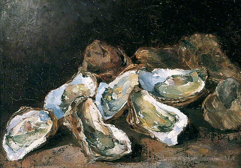 Ti offriamo una riproduzione artigianale su tela dell'opera famosa 'Natura morta con ostriche' di Theodule Ribot, dal Museo delle Riproduzioni.
